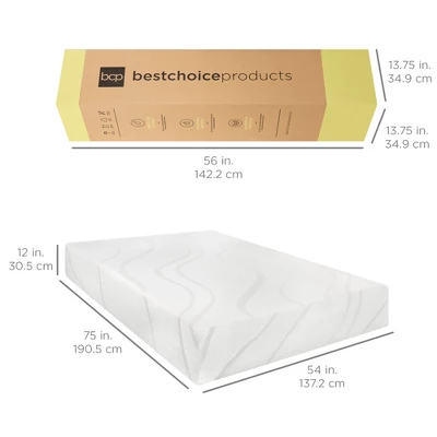 - READY TO USE: This mattress arrives rolled and compressed for easy setup and a comfortable rest right out of the box. Foam meets CertiPUR-US standards for content, emissions, and durability, and are analyzed by independent, accredited testing laboratories.; Full Size: 75″(L) x 54″(W) x 12″(Thick)Queen Size: 80″(L) x 60″(W) x 12″(Thick)King Size: 80″(L) x 76″(W) x 12″(Thick)