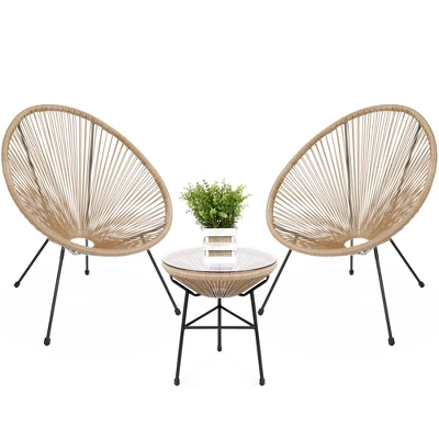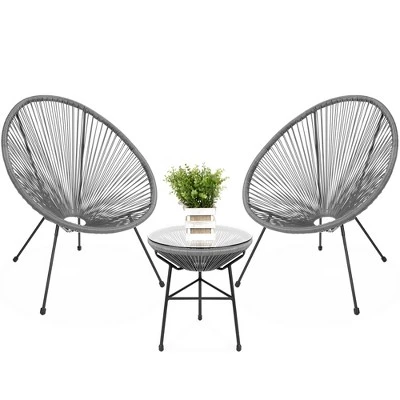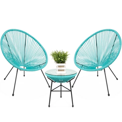 Best Choice Products 3-Piece All-Weather Patio Acapulco-Style Bistro Furniture Set W/ Rope, Glass Top Table