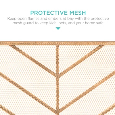 Best Choice Products 52x31in 3-Panel Iron Chevron Fireplace Screen, Spark Guard W/ Handles