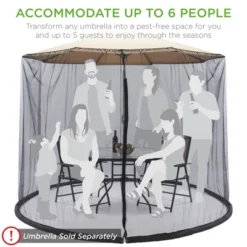 Those pesky seasonal insects have finally met their match! This Adjustable Bug Net is ready for all comers. Transform any umbrella into a pest-free space for you and up to 5 guests to enjoy through the seasons. Tightly woven polyester keeps out mosquitoes, flies, and all kinds of flying insects! A fully adjustable design will add convenient protection to most umbrellas. Simply slide the drawstring back and forth to fit your umbrella’s canopy. Fill the base with water or air to add support and weight against the wind. Easy accessibility meets total protection with zippers set up inside and outside. Let the winged insects try to interrupt your good times!