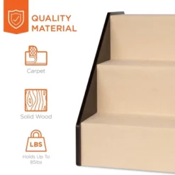 Best Choice Products Foldable Adjustable, Wide Wooden Carpeted Pet Stairs For Injured, Elderly Dog & Cat