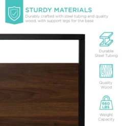 Best Choice Products Metal Wood Platform Queen Bed Frame W/ Wood Slats, Headboard, Footboard, 660lb Cap – Black/Brown