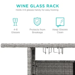 Best Choice Products Outdoor Patio Wicker Bar Counter Table W/ 2 Steel Shelves, 2 Sets Of Rails