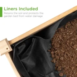 Best Choice Products Raised Garden Bed 48x23x32in Wood Mobile Elevated Planter W/ Wheel Locks, Shelf, Liner
